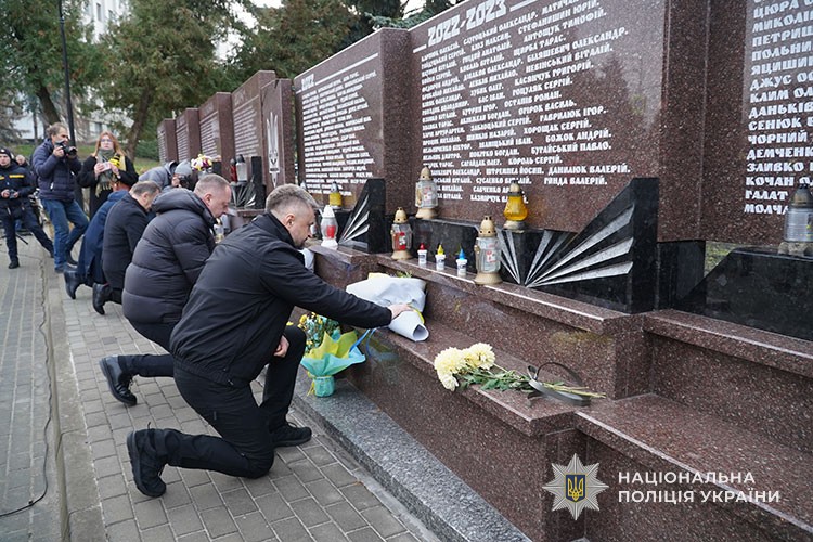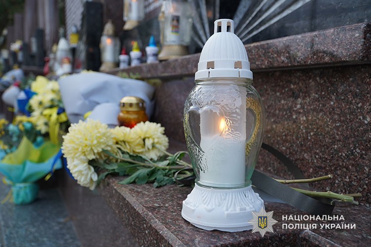 Начальник ГУНП в Тернопільській області Сергій Зюбаненко разом із представниками влади поклав квіти та запалив лампадки біля меморіальної стели “Загинули за волю України”.