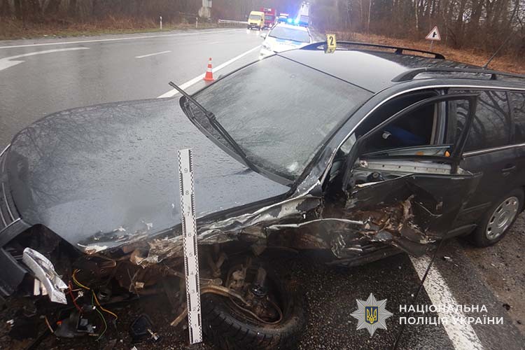 Двадцятирічний водій автомобіля "Volkswagen Passat" виїхав на зустрічну смугу, де зіткнувся із рейсовим автобусом "Mercedes-Benz". На момент аварії в автівці, крім водія, було троє пасажирів віком від 16 до 19 років. Їх усіх госпіталізували.