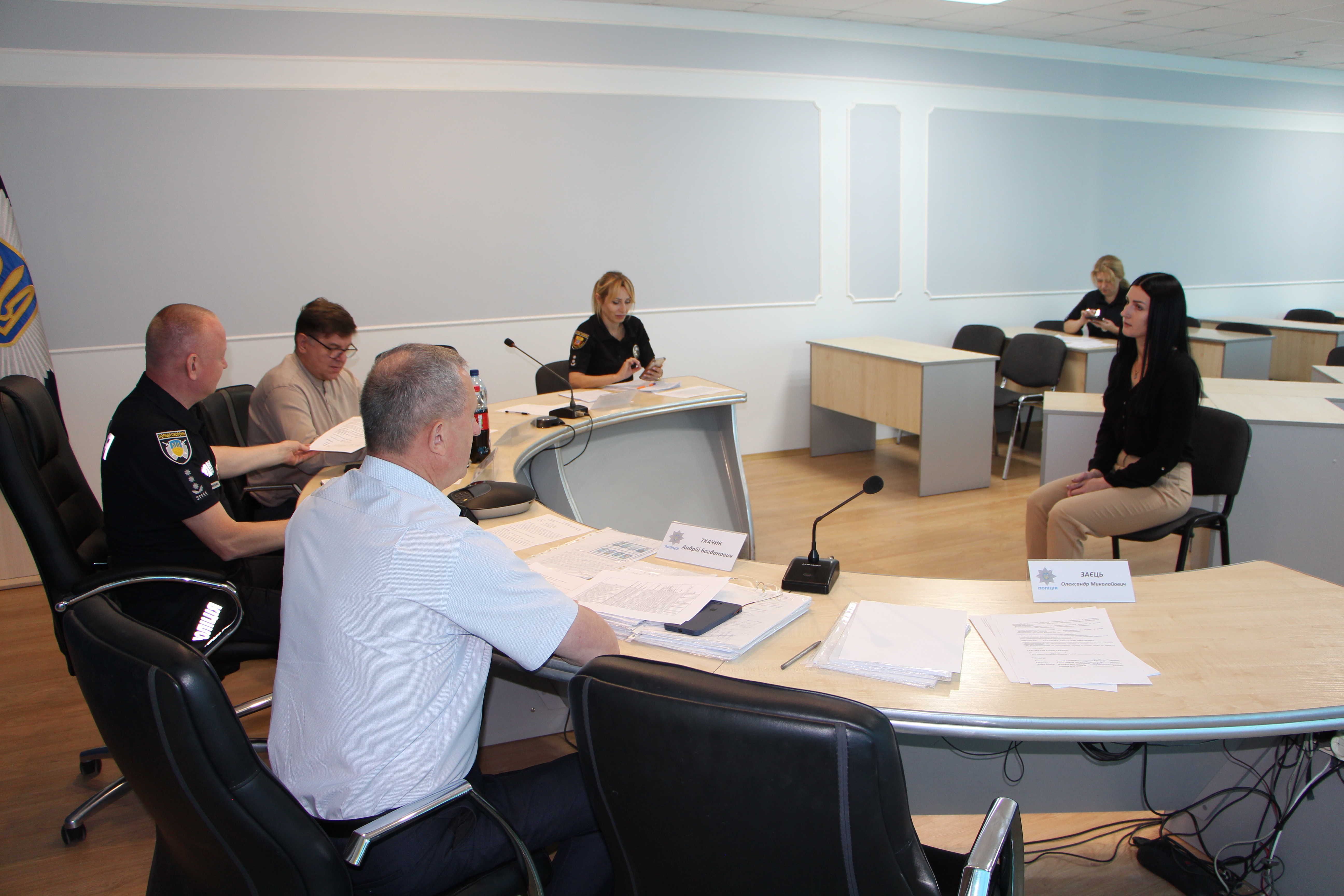 Співбесіда з представниками поліцейської комісії - фінальний етап кадрового відбору. Члени поліцейської комісії, спілкуючись з кандидатами, вивчали надані матеріали та результати попередніх етапів конкурсу.