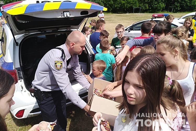 Знання, як відомо, діти добре запам’ятовують у формі гри, тож поліцейські влаштували для неповнолітніх різні квести та змагання. Аби охолодитися у спеку, діти в перервах між іграми смакували морозивом, яке привезли гості у погонах.