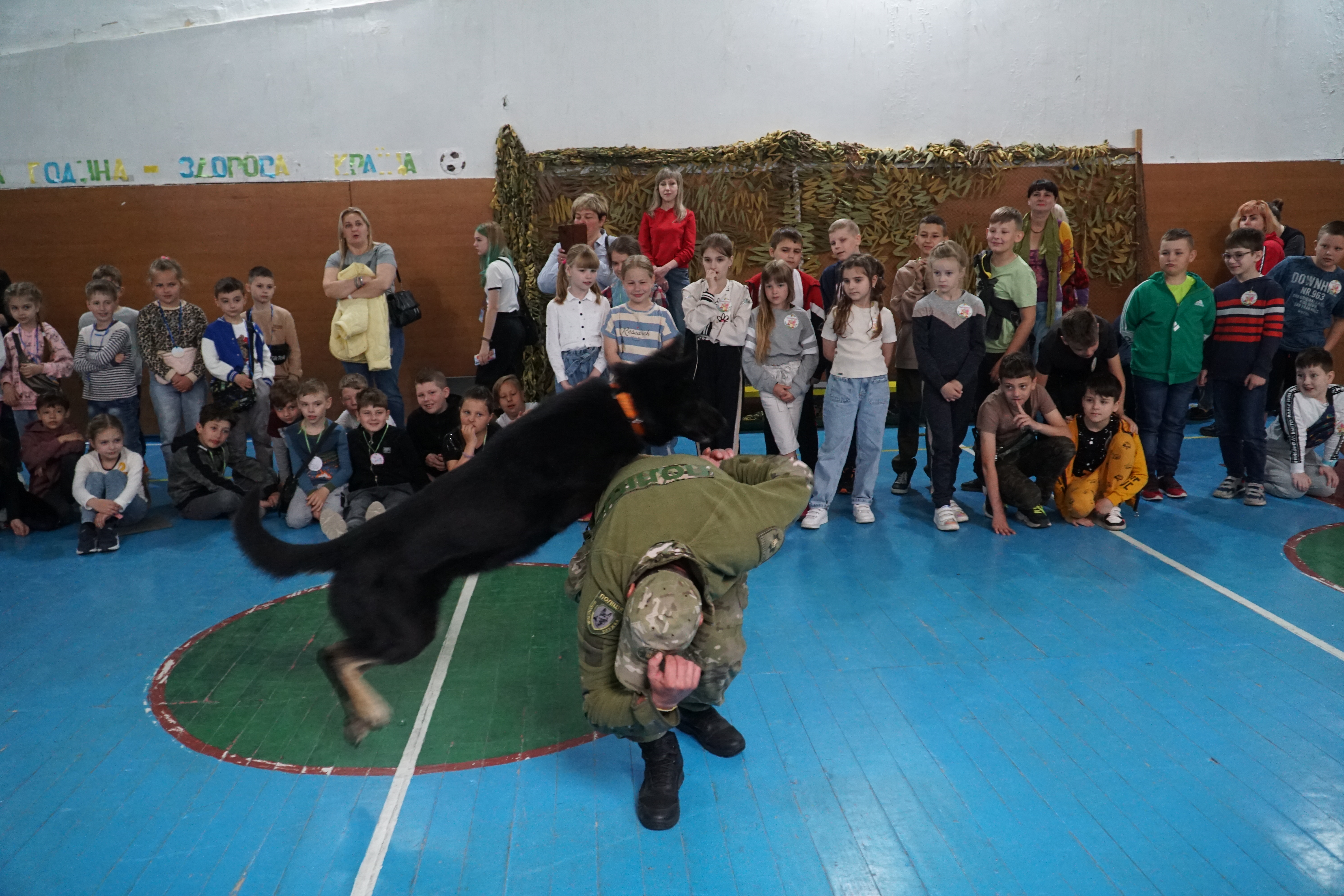 Розважав юних відпочивальників службовий собака. Вони захоплено спостерігали, як працює чотирилапий помічник у парі з кінологом: виконує команди, знаходить різні предмети. Поліцейські ювенальної превенції розповідали про свою роботу та роздали пізнавальні листівки з корисною інформацією. Діти активно цікавилися у гостей як працюють різні служби поліції, ділилися своїми враженнями.