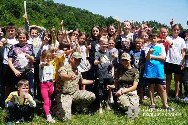 Винагородою за участь у Дні безпеки стало для дітей спілкування з кінологами та їхніми підопічними Ельзою і Шаманом. Чотирилапі помічники поліцейських продемонстрували школярам чітко відточені навички, зразкову слухняність і бездоганне дотримання правил.