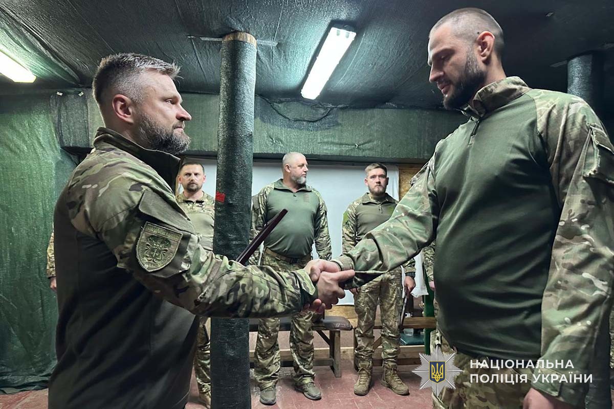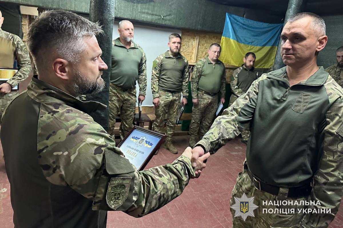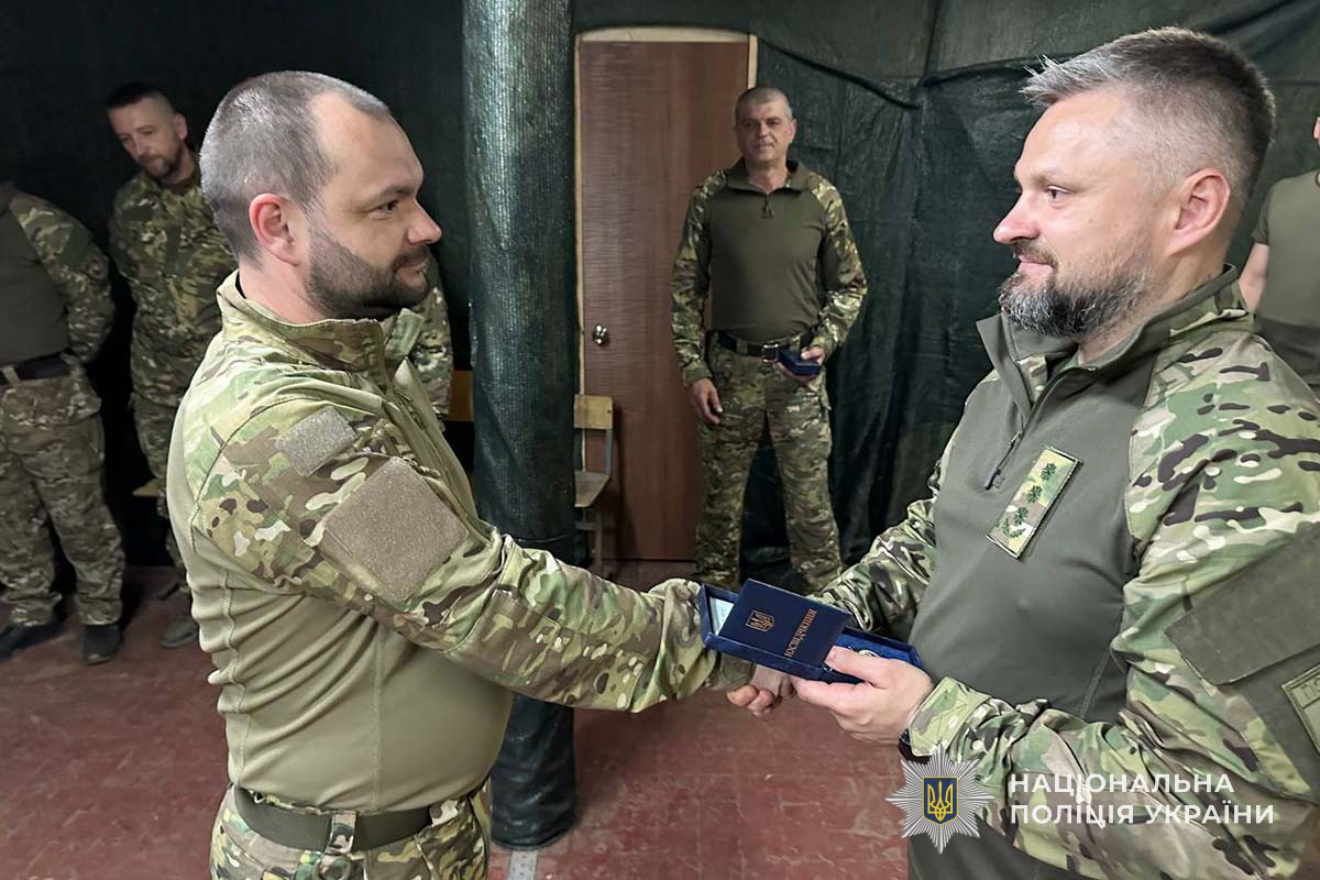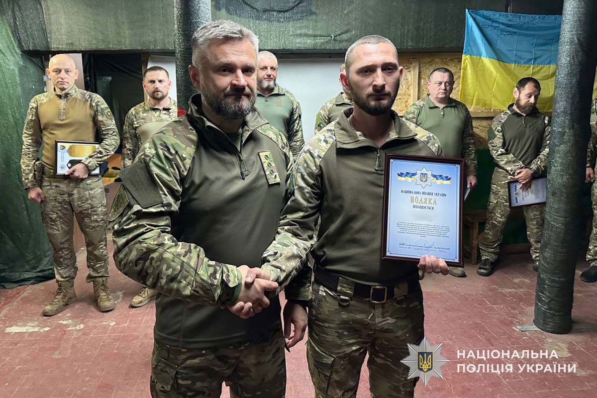 Нагороди поліцейським, котрі у складі Сил безпеки та оборони виконують бойові завдання на передовій, вручив начальник Головного управління Національної поліції в Тернопільській області Сергій Зюбаненко під час службового відрядження на Донеччину.