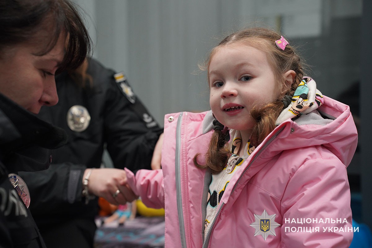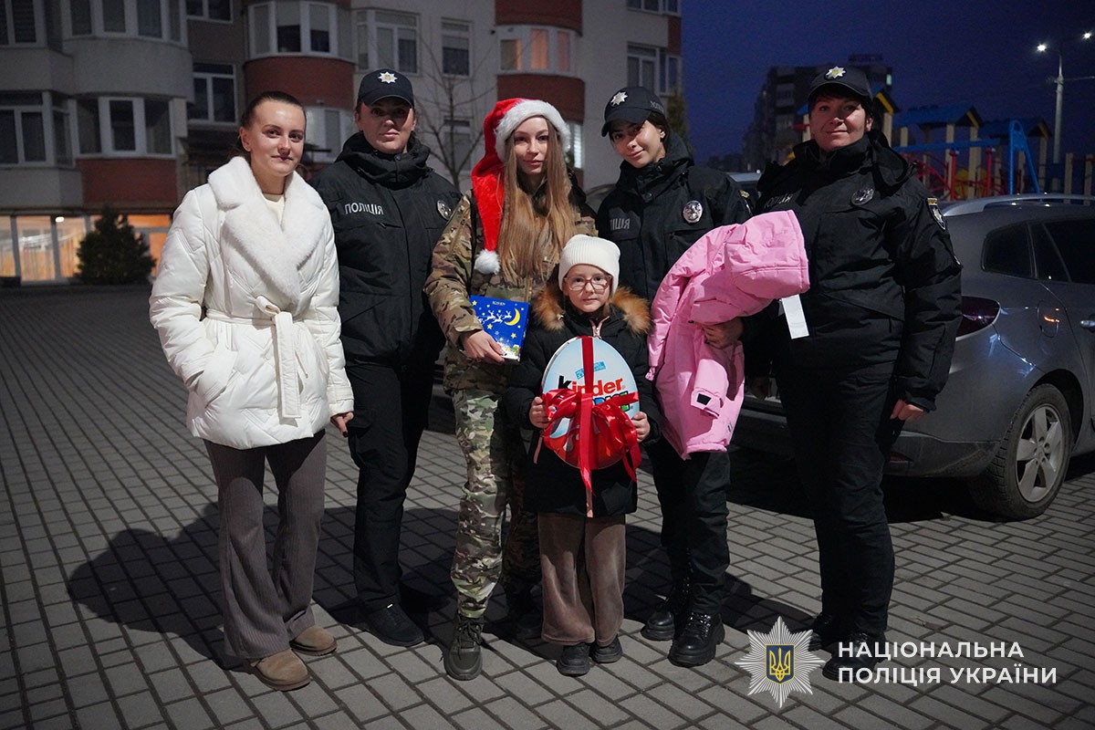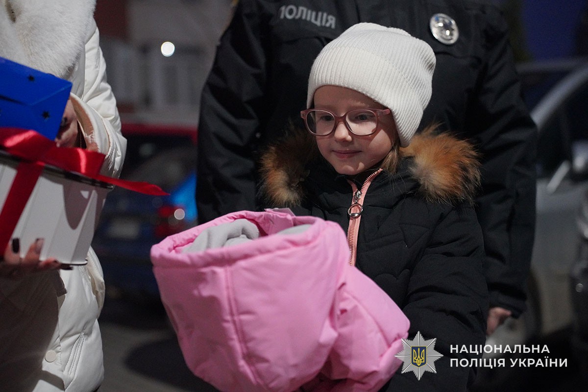 Співробітники управління кадрового забезпечення та представниця Департаменту головної інспекції та дотримання прав людини Нацполіції за сприяння громадського формування «Капеланський патруль» підготували для малечі теплі куртки й солодощі.