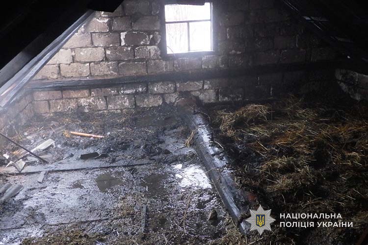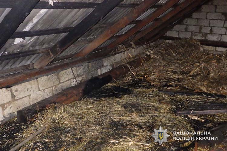 Рятувальники приїхали вчасно та ліквідували пожежу. У ході перевірки з'ясувалося, що співмешканець на горищі підпалив солому і як наслідок - спалахнула пожежа на площі 80 метрів квадратних.
