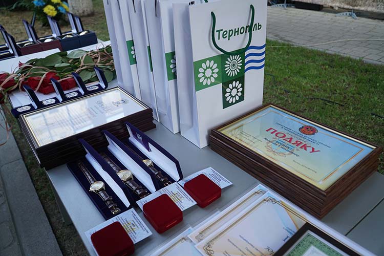 Кращим працівникам поліції краю Сергій Зюбаненко, а також представники органів місцевого самоврядування та інших силових структур Тернопільщини вручили медалі, цінні подарунки, нагородні знаки, грамоти та подяки.