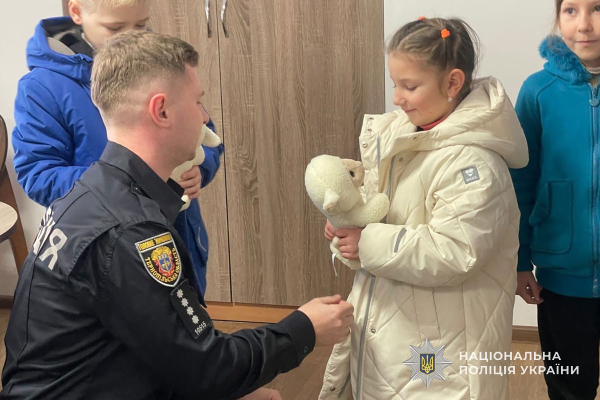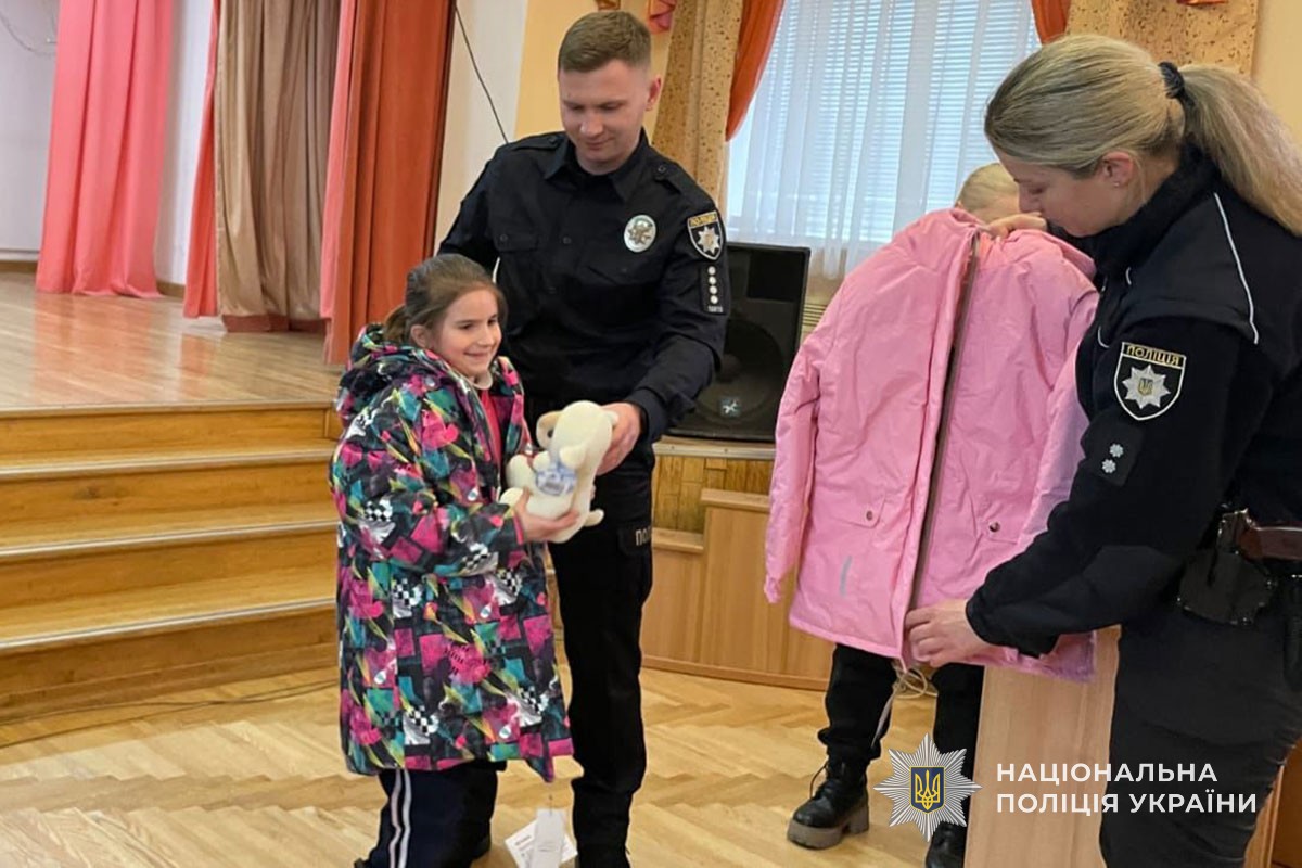 Добро, що зігріває: на Тернопільщині поліцейські Служби освітньої безпеки та благодійники передали теплі подарунки дітям