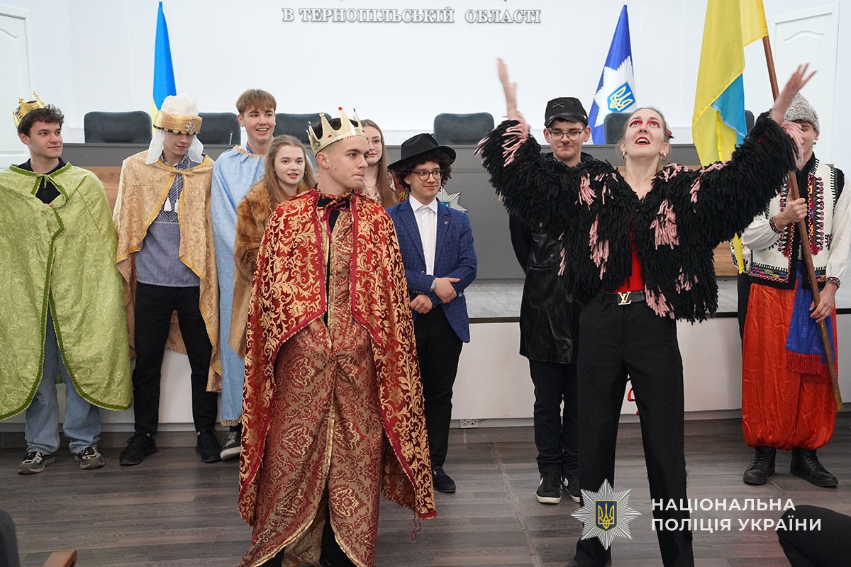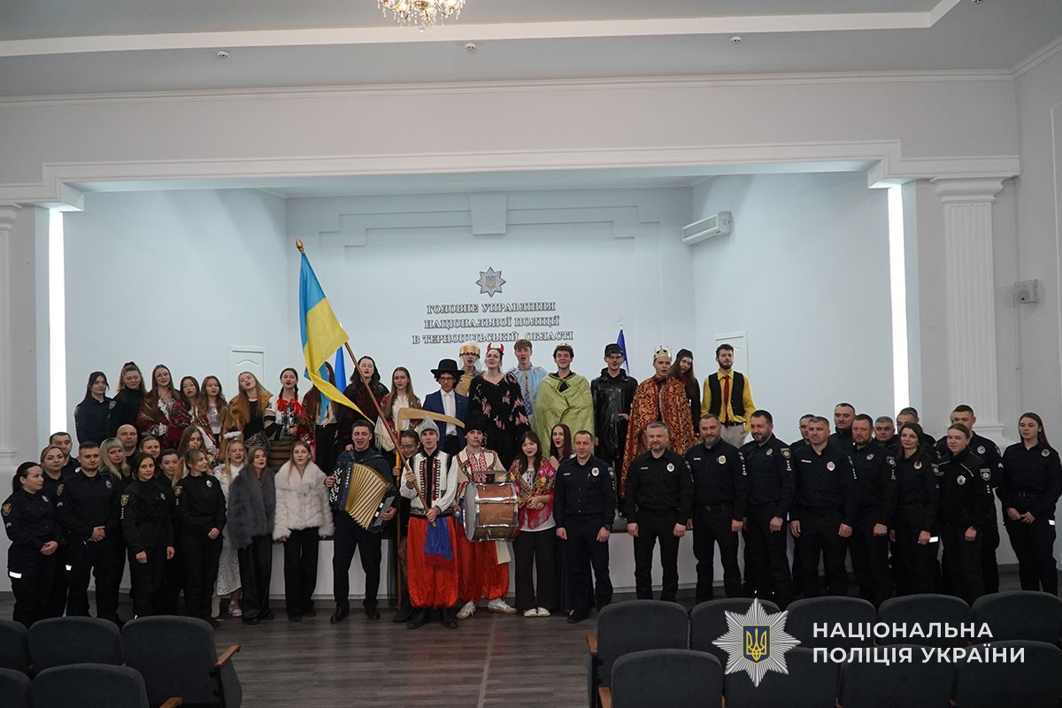 До Головного управління Національної поліції в Тернопільській області завітали студенти Західноукраїнського національного університету факультету економіки та управління, аби привітати поліцейських з різдвяними та прийдешніми новорічними святами.