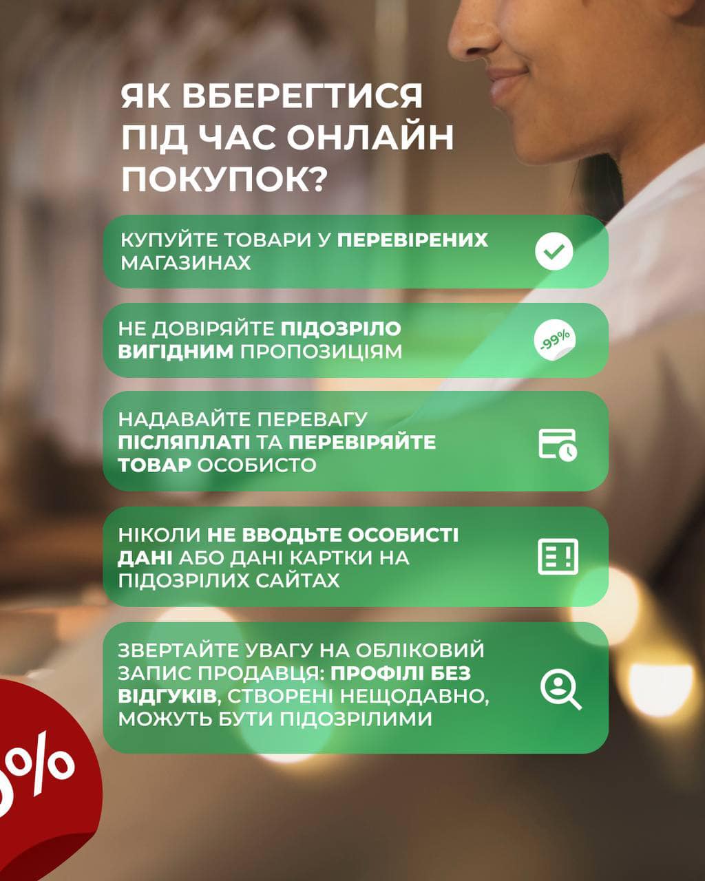 жителька обласного центру. Жінка розповіла, що вирішила продати дитячий візок і розмістила оголошення на одному з онлайн-майданчиків. Згодом їй написав нібито зацікавлений покупець, який запропонував перейти в іншу соціальну мережу для зручності листування. Він надіслав їй покликання на сайт, де потрібно було оформити доставку. Потерпіла перейшла на ресурс і ввела дані банківської картки. За лічені хвилини вона отримала сповіщення про списання 10 000 гривень з рахунку. Виявилося, що покликання вело на фішинговий сайт, створений шахраями з метою викрадення грошей.