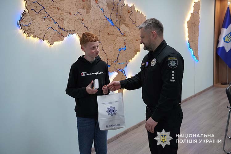 "Ти молодець, бо ти уважний і добре, що ти це показав поліцейським. Ти врятував людські життя. Ми підготували невеличкі подарунки - здійснення маленьких дитячих бажань. Для мене було дивиною, що ти обрав подарунок не для себе, а для мами. Це повага та шана. У тебе велике серце. Ти молодець і ми тобі дякуємо".