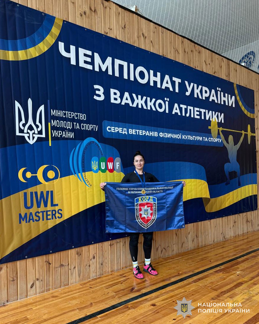 Наприкінці 2025 року на службу в підрозділ поліції особливого призначення «КОРД» в Тернопільській області прийшла чемпіонка України з важкої атлетики Лілія Поляруш. Сьогодні дівчина гордиться новим здобуттям - першим місцем у своїх ваговій та віковій категоріях на Чемпіонаті України з важкої атлетики серед ветеранів фізичної культури та спорту, що відбувся у Луцьку.