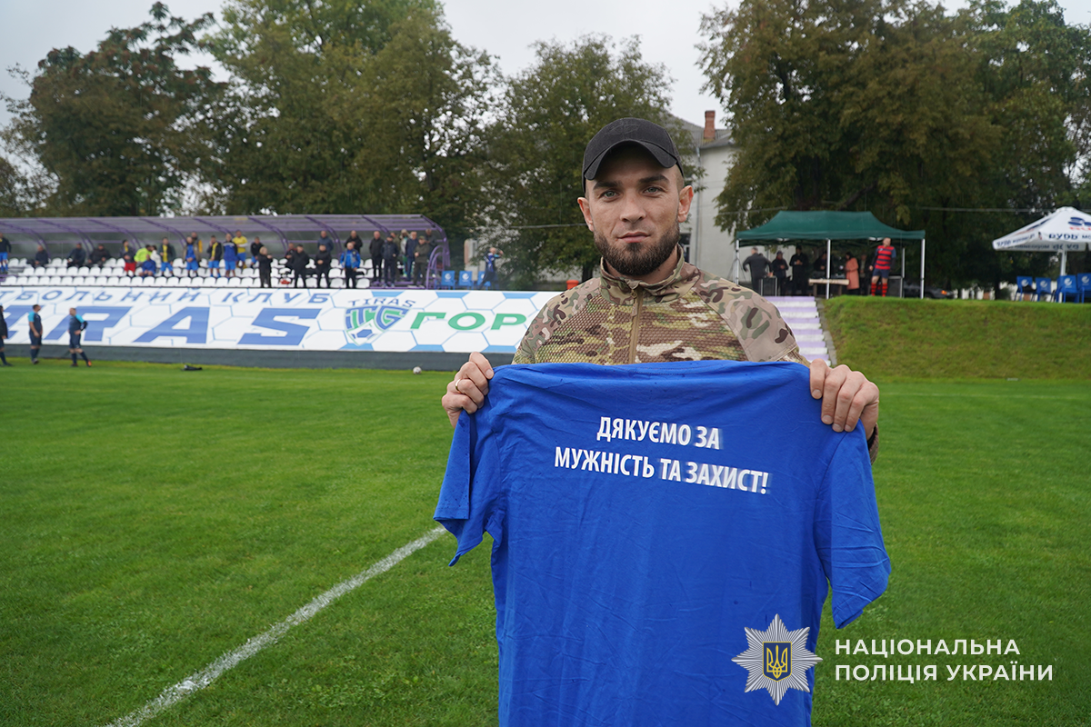 Поряд із поліцейськими на полі грав на протезі і ветеран штурмової бригади НПУ «Лють» Степан Гончарик. Він вважає участь у матчі знаком підтримки поранених побратимів. Чоловік зізнався, що його мотивував займатися спортом товариш з ампутацією, який сьогодні бігає марафони. І тепер Степан готовий допомагати іншим ветеранам, які хочуть займатися спортом.