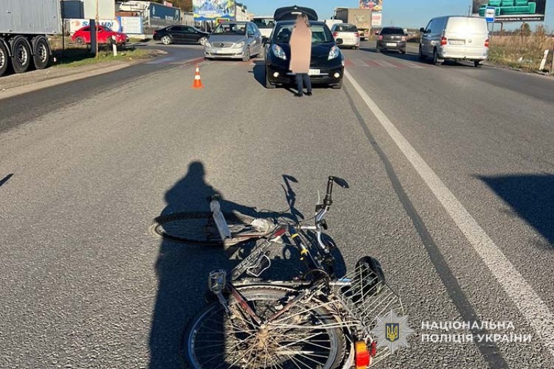 На місці аварії працювали слідчі. За попередньою інформацією, потерпілий переходив дорогу на нерегульованому пішохідному переході і поруч віз велосипед, коли його збила водійка автомобіля "Nissan Leaf".