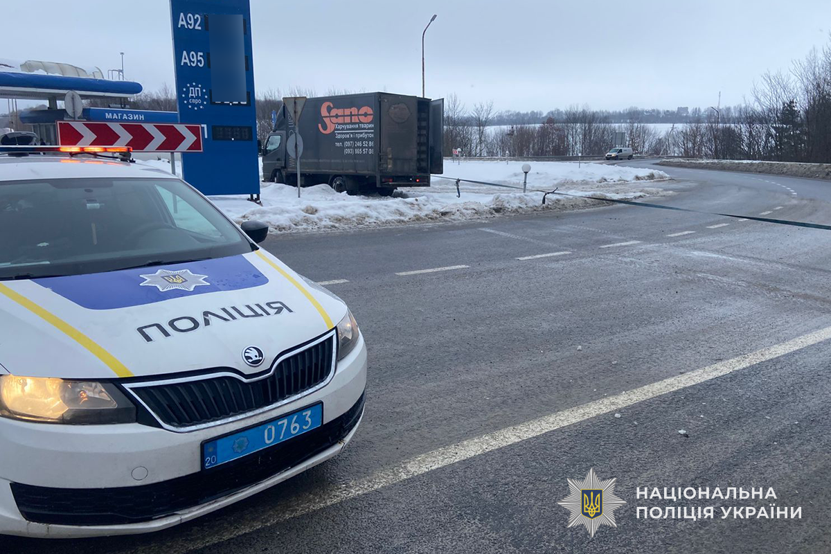 На місце дорожньо-транспортної пригоди виїжджали співробітники патрульної поліції. За попередніми даними, близько 22:15 водій автомобіля MITSUBISHI CANTER, 1959 року народження, не впорався з керуванням і його транспортний засіб знесло з дороги. У результаті - фура з’їхала з проїжджої частини, переїхала через бордюр та виїхала на територію автозаправної станції, де врізалася в опору вуличного освітлення.