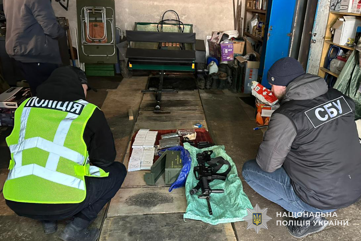 Одночасно оперативники карного розшуку разом із поліцейськими Заліщицького відділення поліції задокументували 63-річного місцевого мешканця, який облаштував у покинутому домоволодінні схрон заборонених предметів.
