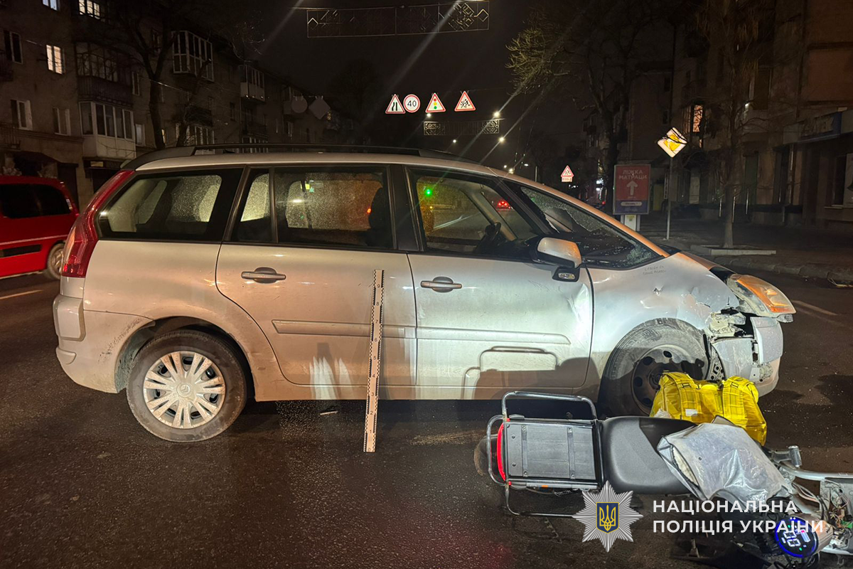 Ще одна автопригода з травмованими трапилася того ж вечора в обласному центрі. О 19:30 водій автомобіля Citroen C4 на нерегульованому перехресті, виїжджаючи із другорядної дороги на головну, допустив зіткнення із мопедом Crosser Max. Унаслідок удару тілесні ушкодження отримав кермувальник мототранспорту.