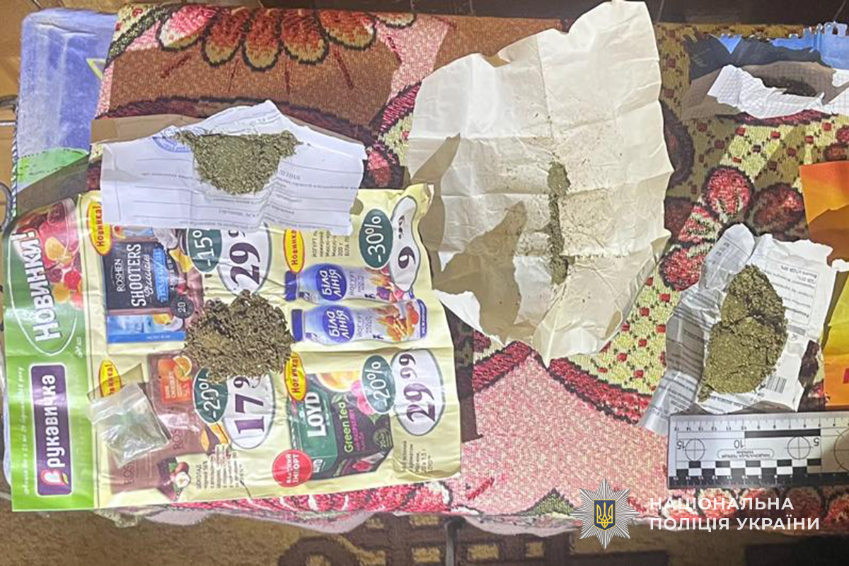 На підставі ухвали Гусятинського районного суду правоохоронці провели санкціонований обшук у будинку фігуранта і виявили 109 патронів калібру 5,45 мм та 7 паперових згортків із речовиною рослинного походження зелено-коричневого кольору, схожою на канабіс.