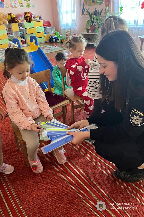 Повчальний захід із профілактики безпеки дорожнього руху провели для вихованців дошкільного навчального закладу Товстенської територіальної громади поліцейські відділення поліції 4 міста Заліщики. Вони розповіли малечі як стати помітними у темряві та вберегти себе на неосвітленій дорозі.