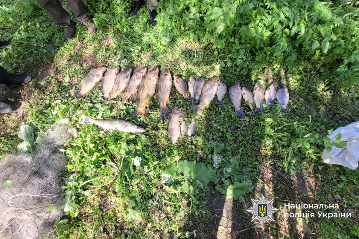 На місце події виїжджала слідчо-оперативна група відділення поліції №2 (м. Зборів), яка задокументувала факт правопорушення, вилучила знаряддя незаконного промислу, а також улов – 20 рибин, серед яких 16 сазанів, 3 сріблясті карасі та 1 судак.