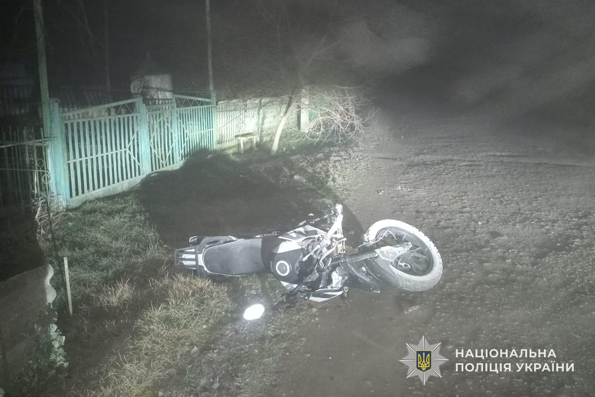 Повідомлення про травмованого неповнолітнього надійшло на спецлінію Підволочиського відділення поліції. У ході перевірки стало відомо, що потерпілий близько 2 ночі, керуючи мотоциклом Tekken, не впорався з керуванням та перекинувся. Юнака з тілесними ушкодженнями госпіталізували до медзакладу. У потерпілого медики констатували ще й алкогольне отруєння. За даним фактом відкрите провадження відповідно до статті 286 Кримінального кодексу України.