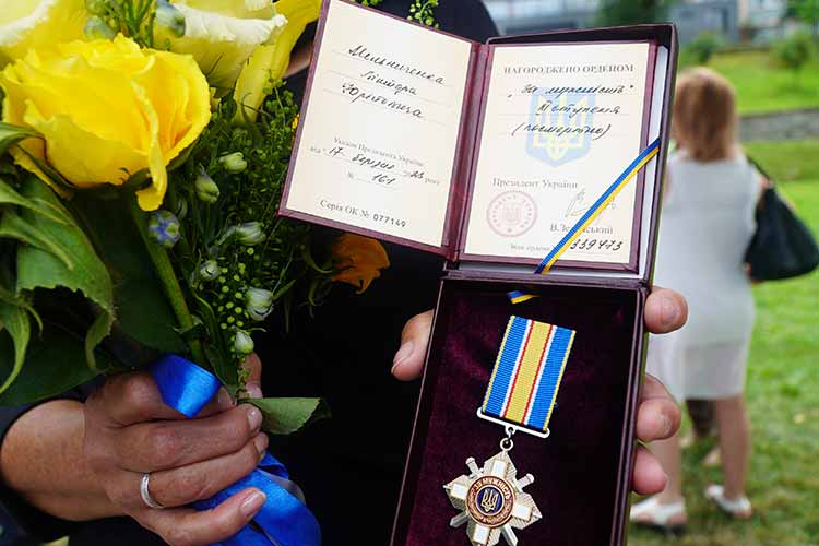 На пам‘ятні заходи в Тернополі зібралися рідні та близькі наших героїв, захисників. Прийшла і родина Віктора Мельниченка – поліцейського спецпідрозділу «КОРД», котрий загинув 13 лютого 2023 року під час виконання бойового завдання у місті Бахмут. Матері, котра б воліла тішитися досягненнями та успіхами сина, сьогодні вручили його державну відзнаку «За мужність». Посмертно. Схиляємо голови перед подвигом наших героїв-захисників та силою і незламністю їхніх родин.
