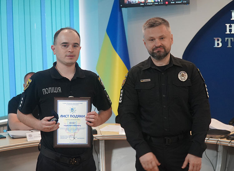 За сумлінне та добросовісне ставлення до виконання службових обов'язків, високий професіоналізм та ефективні дії при розкритті злочинів Ігоря Бінаса відзначив подякою та пам'ятною монетою начальник ГУНП в Тернопільській області Сергій Зюбаненко.