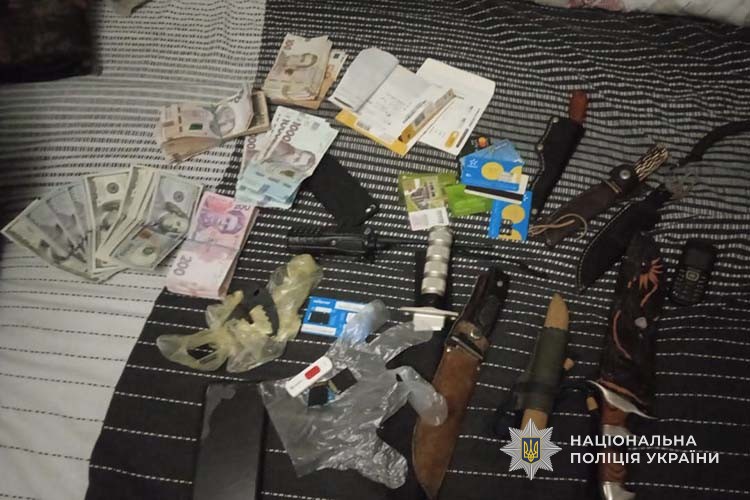 Поліцейські провели обшуки за місцями мешкання фігурантів та вилучили ножі, кастет, автомобіль, гроші, банківські картки та мобільні телефони.