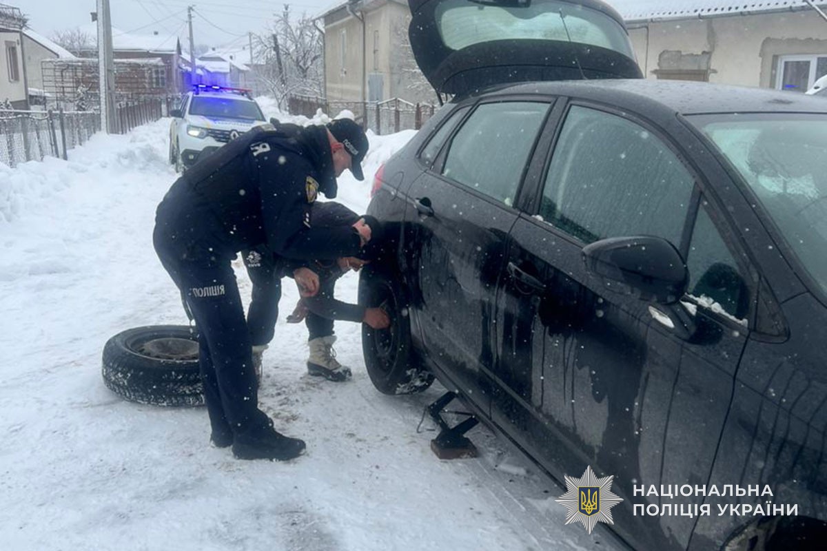 У Чортківському районі поблизу села Нирків поліцейські витягли із снігового замету автомобіль, у якому перебували двоє дітей віком 6 та 10 років. Повідомлення про те, що транспортний засіб не може самостійно продовжити рух, надійшло на спецлінію 102. На місце події виїхали співробітники сектору реагування патрульної поліції Заліщицького відділення поліції. Правоохоронці за допомогою спецтехніки допомогли витягнули авто зі снігової пастки, після чого водій зміг безпечно продовжити рух.