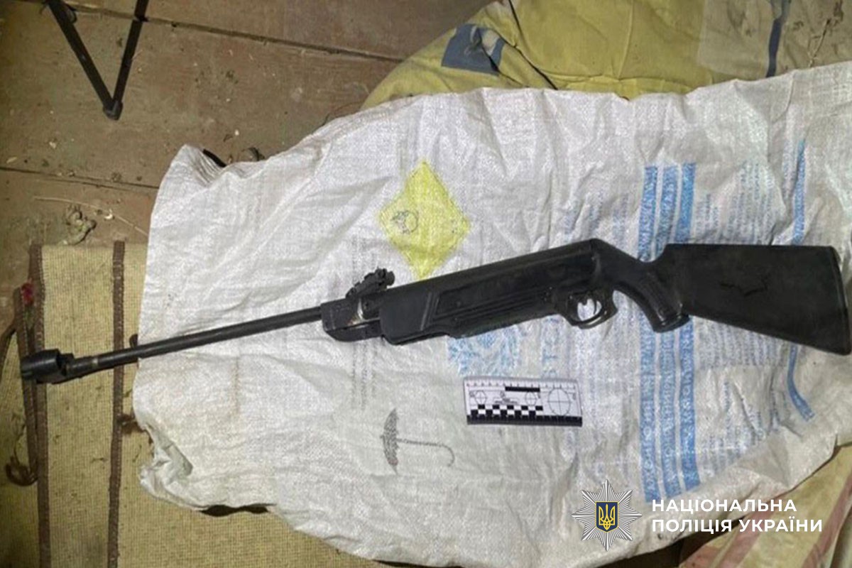 Під час огляду помешкання поліцейські виявили кілька одиниць та набоїв. Серед вилученого - обріз гладкоствольної мисливської рушниці, обріз нарізної гвинтівки Мосіна, два предмети ззовні схожі на стартові порохові заряди до ручного протитанкового гранатомета, дві пневматичні гвинтівки з явними ознаками переробки та декілька набоїв.