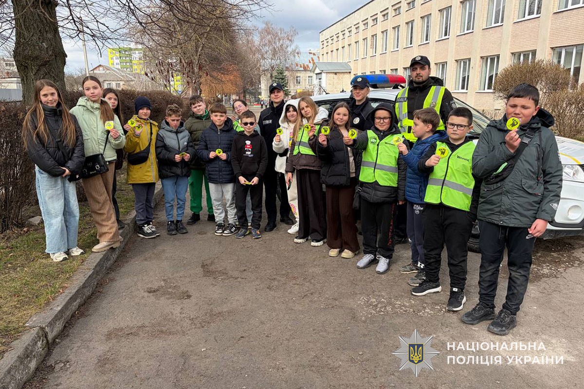 Також наголосили на важливості носіння світловідбиваючих елементів, які роблять дітей помітнішими на дорозі у темну пору доби. Учням роздали світловідбиваючі наліпки.