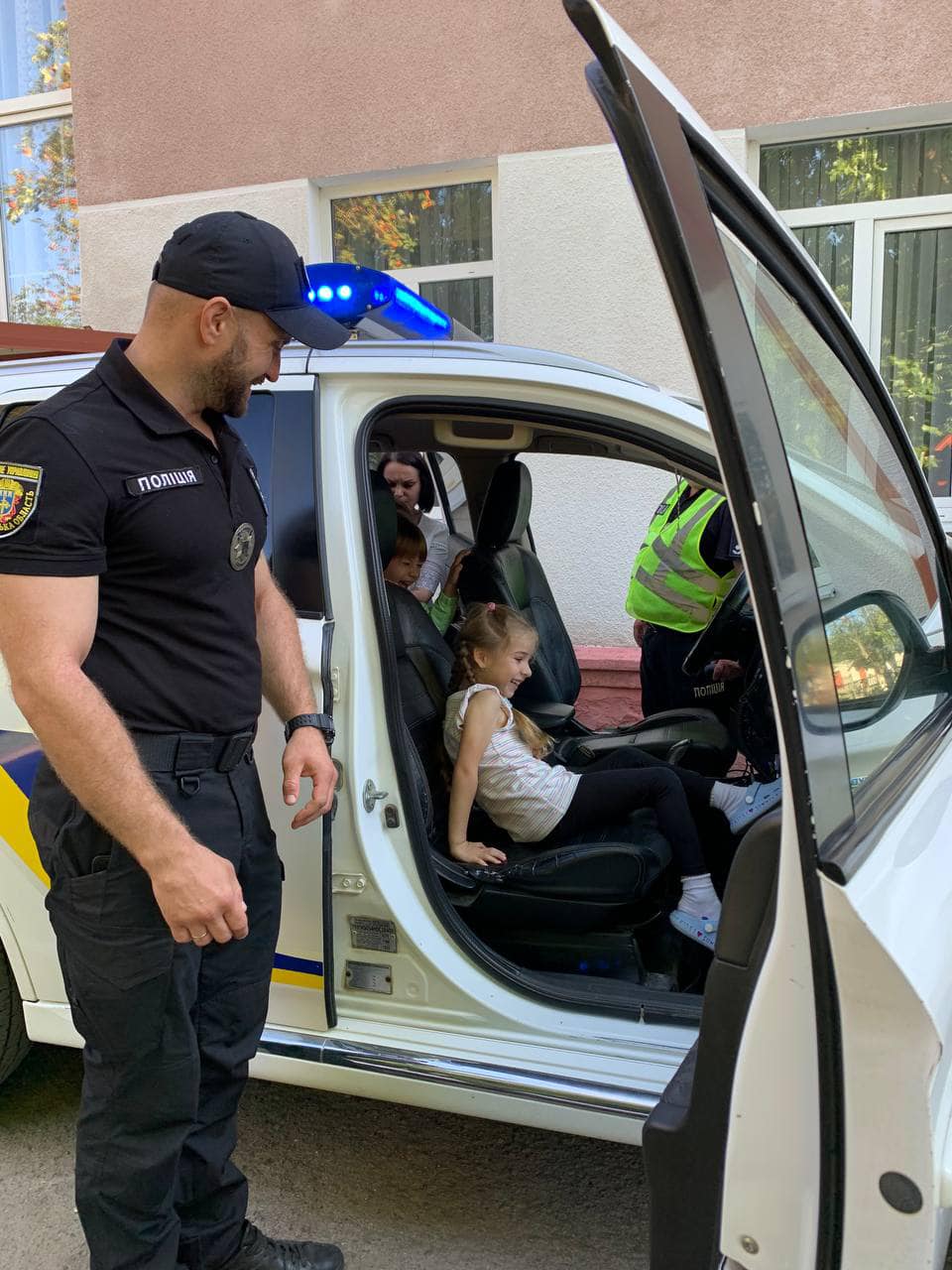 Дошкільнята з цікавістю спілкувались з правоохоронцями, отримали подарунки, а ще мали можливість відчути себе поліцейськими: посидіти у службовому авто, увімкнути спецсигнал та проблискові маячки.