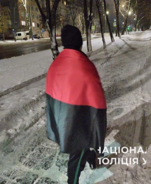 13 січня близько 21 години до співробітників Тернопільського районного управління поліції надійшло повідомлення від місцевої жительки про те, що на зупинці громадського транспорту, що на вулиці Тарнавського, перебуває невідомий чоловік з червоно-чорним прапором і тягне його по землі.
