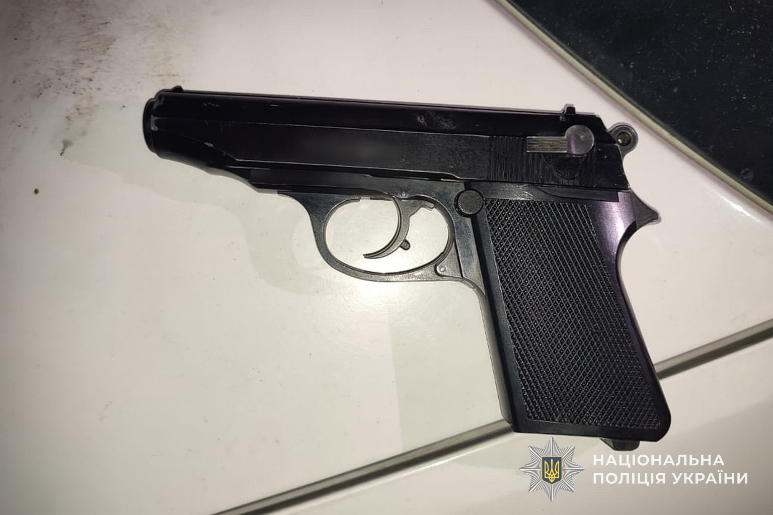 Прибувши на місце події, правоохоронці виявили правопорушника — 33-річного тернополянина, раніше судимого за злочини, пов’язані з незаконним обігом наркотиків та крадіжки. Під час поверхневої перевірки у нього вилучили предмет, зовні схожий на пістолет. За попередніми даними, це стартова зброя.