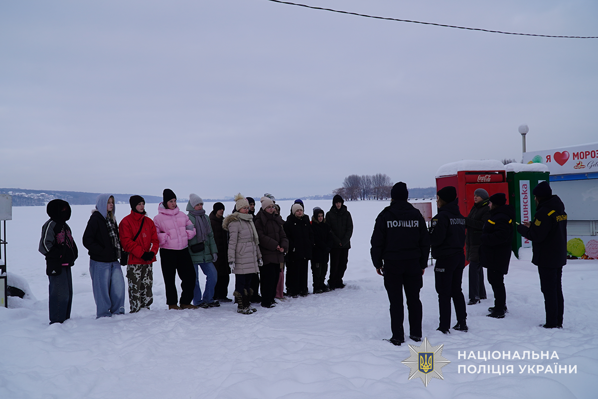Вихід на кригу, катання на ковзанах, ігри поблизу водойм можуть бути небезпечними для життя та здоров’я. Особливої уваги потребує й поведінка на дорогах: прихована під снігом ожеледиця збільшує гальмівний шлях автомобілів, тож навіть звичайний перехід проїжджої частини вимагає особливої обережності. З метою профілактики травматизму та надзвичайних подій ювенальні поліцейські спільно з рятувальниками пояснюють учнями навчальних закладів, як не потрапити в біду.