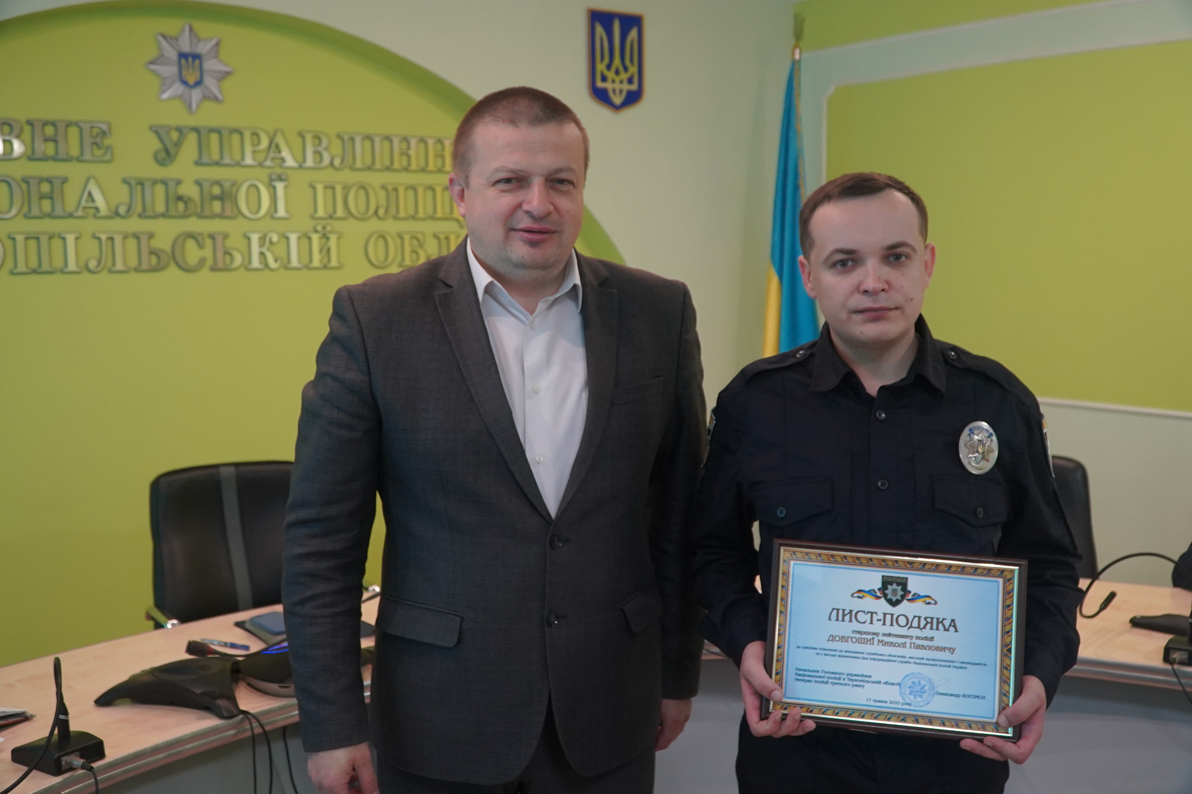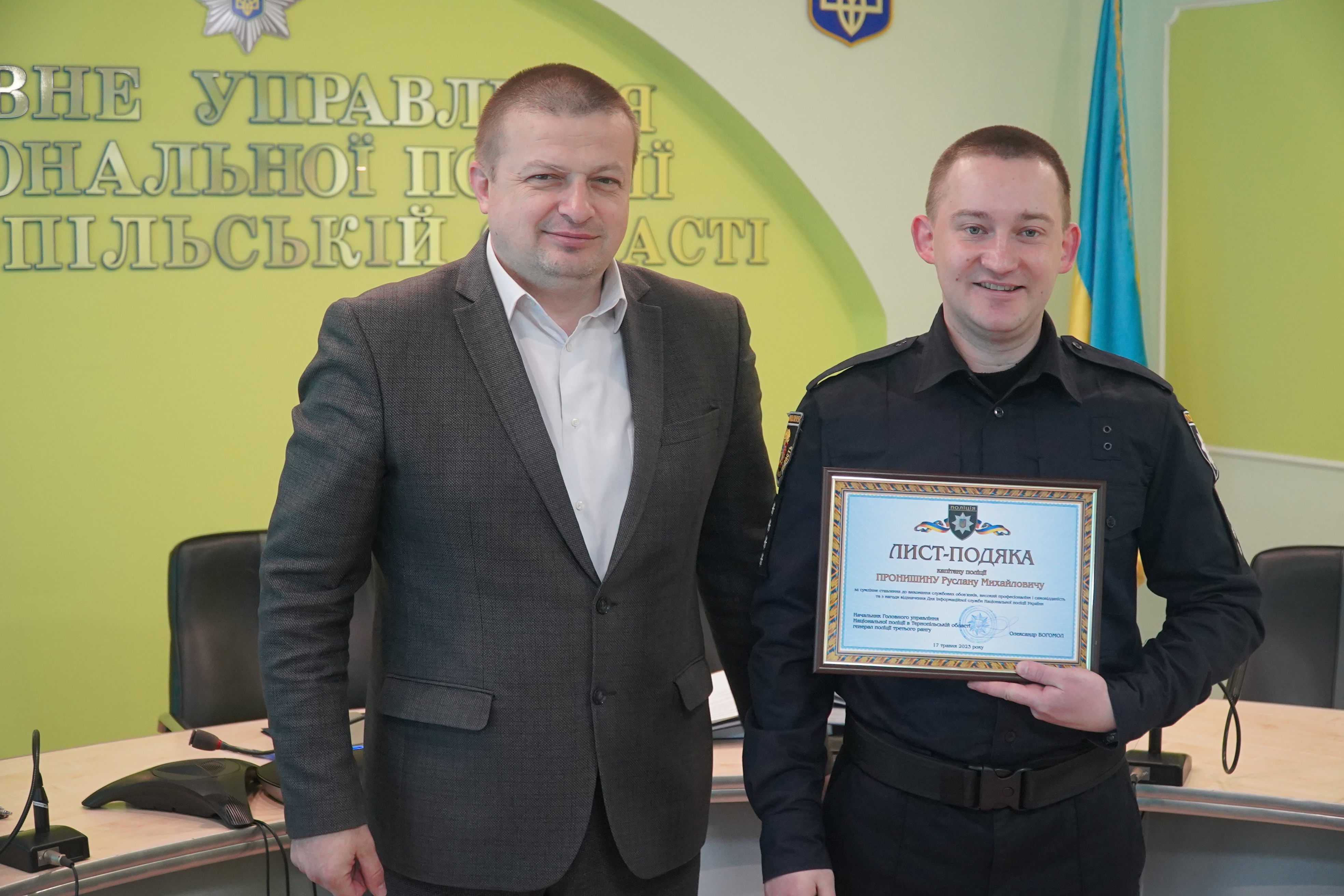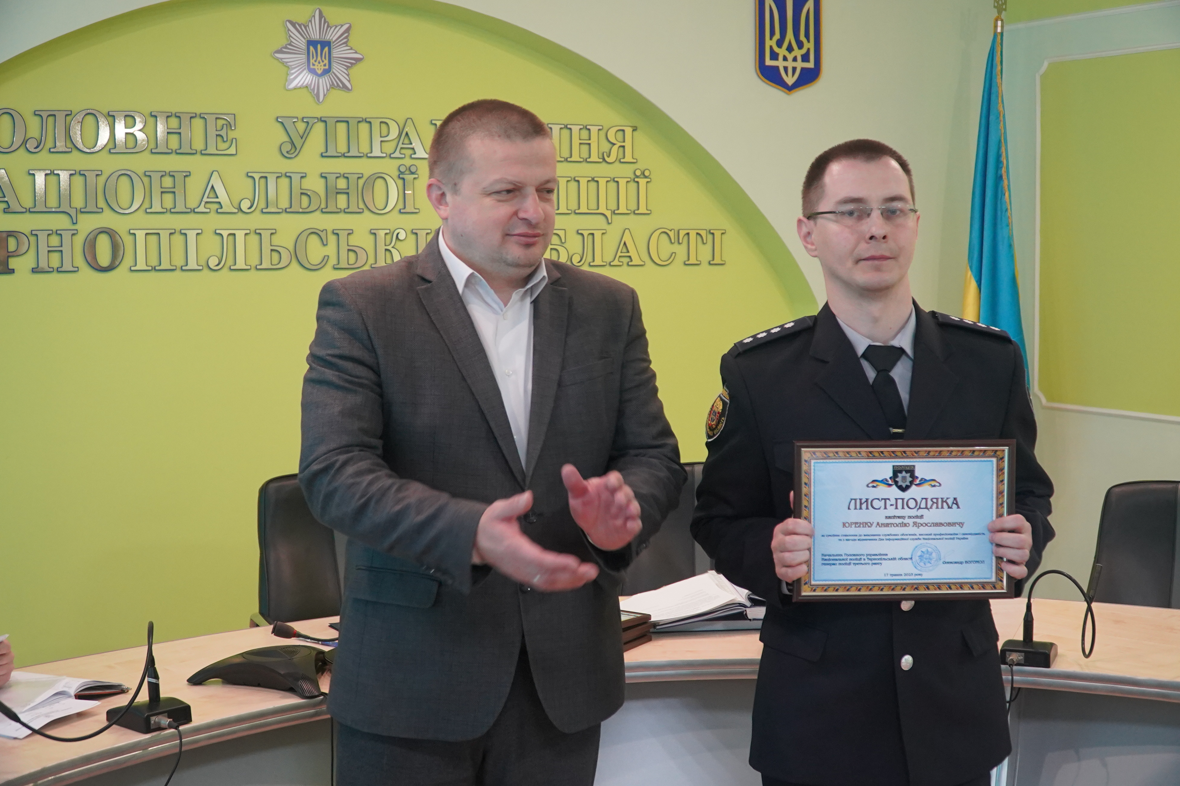 Листи - подяки за відмінну службу одержали працівники управління організаційно-аналітичної підтримки. Очільник тернопільської поліції подякував поліцейським за професіоналізм та побажав й надалі гідно виконувати службові обов’язки задля нових здобутків.