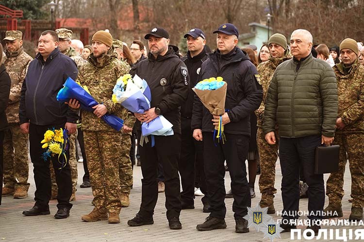 Представники влади, правоохоронних органів, військовослужбовці та громадськість зібралися біля меморіальної стели «Борцям за волю України», щоб хвилиною мовчання й покладанням квітів вшанувати тих, хто віддав життя за територіальну цілісність нашої країни.