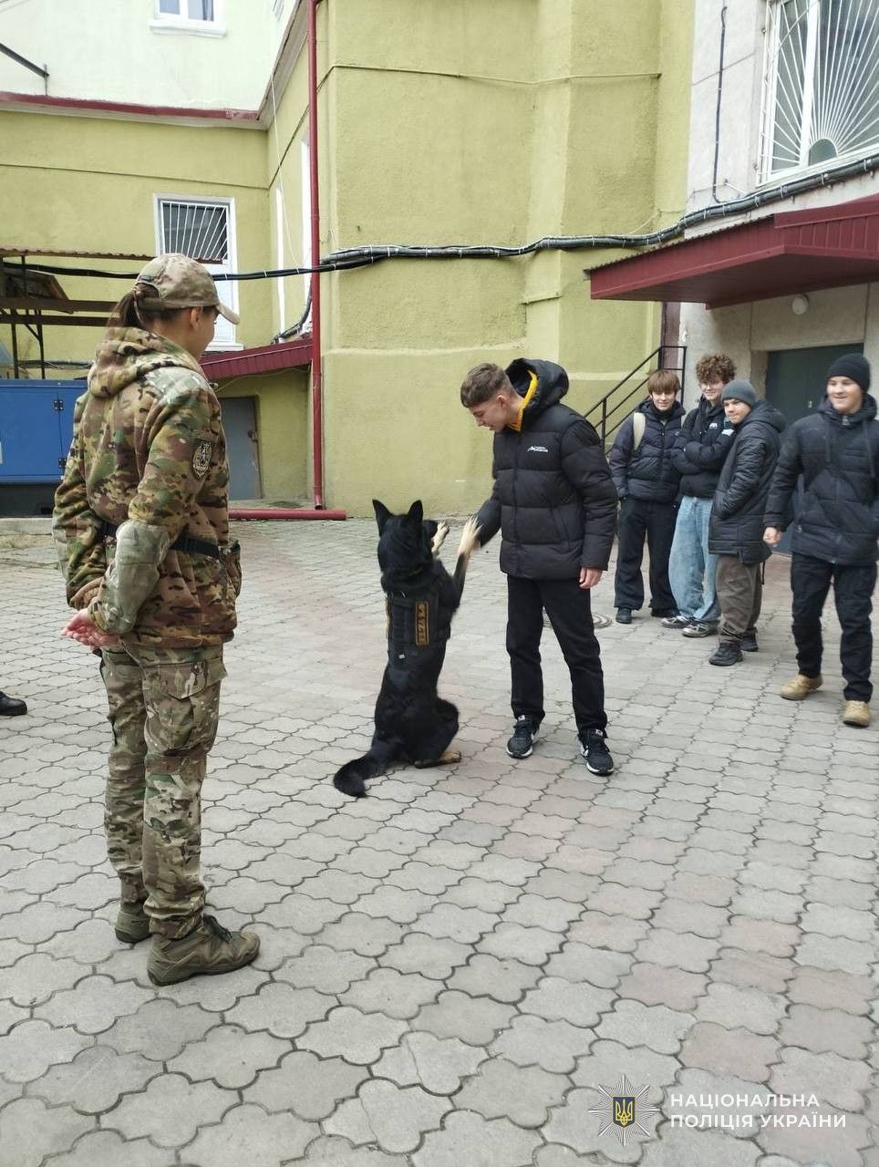 Особливе враження на школярів справила робота кінологічного підрозділу. Поліцейські кінологи розповіли про підготовку службових собак, їхню роль у пошуку вибухівки, зброї, наркотичних речовин та у затриманні правопорушників. Учні мали можливість поспостерігати за тренуванням чотирилапих поліцейських та поставити запитання фахівцям.