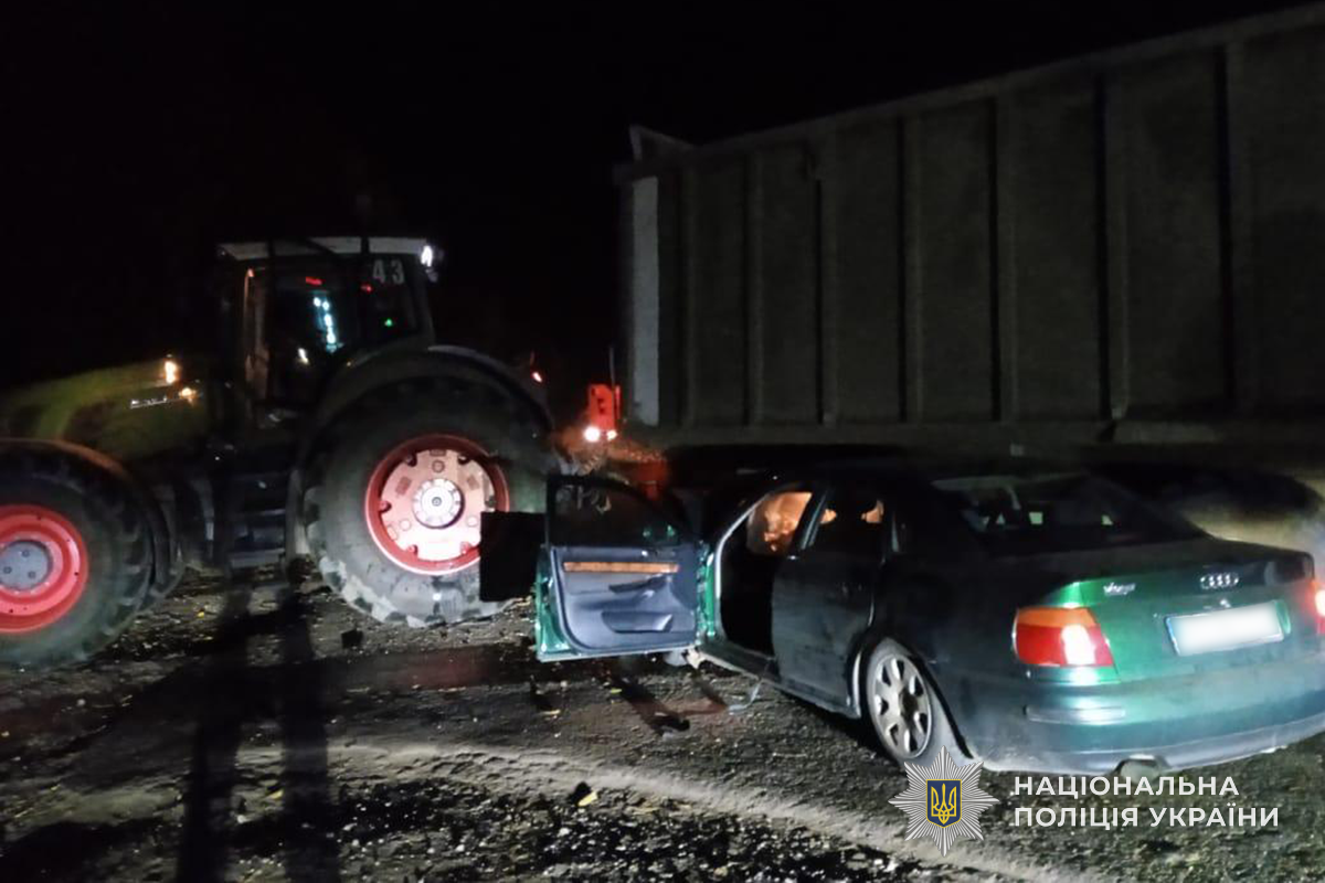 На трасі Івано-Франківськ - Бучач - Тернопіль, неподалік села Нові Петликівці, близько 21:00 водій автомобіля Audi A4, здійснюючи маневр обгону сільськогосподарської техніки, допустив зіткнення із трактором Fendt 936, який рухався у попутному напрямку. Тілесні ушкодження отримав і водій, і пасажирка Audi. Їх обох госпіталізували.