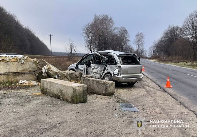 За попередніми даними, 32-річний житель Кременецького району на заокругленій ділянці дороги не впорався з керуванням автомобілем «Chrysler Raw Van» і в’їхав у бетонні плити.