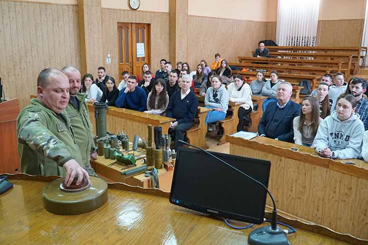Зі слів начальника відділу вибухотехнічної служби ГУНП в Тернопільській області Ігора Васьківа, темою практичного заняття стали відомості про поводження з предметами, які несуть вибухову загрозу. Разом зі своїм колегою Віталієм Ярошенком вони детально розповіли про види вибухових предметів, їхні тактичні характеристики та, найважливіше, заходи безпеки при виявленні та поводженні з ними.