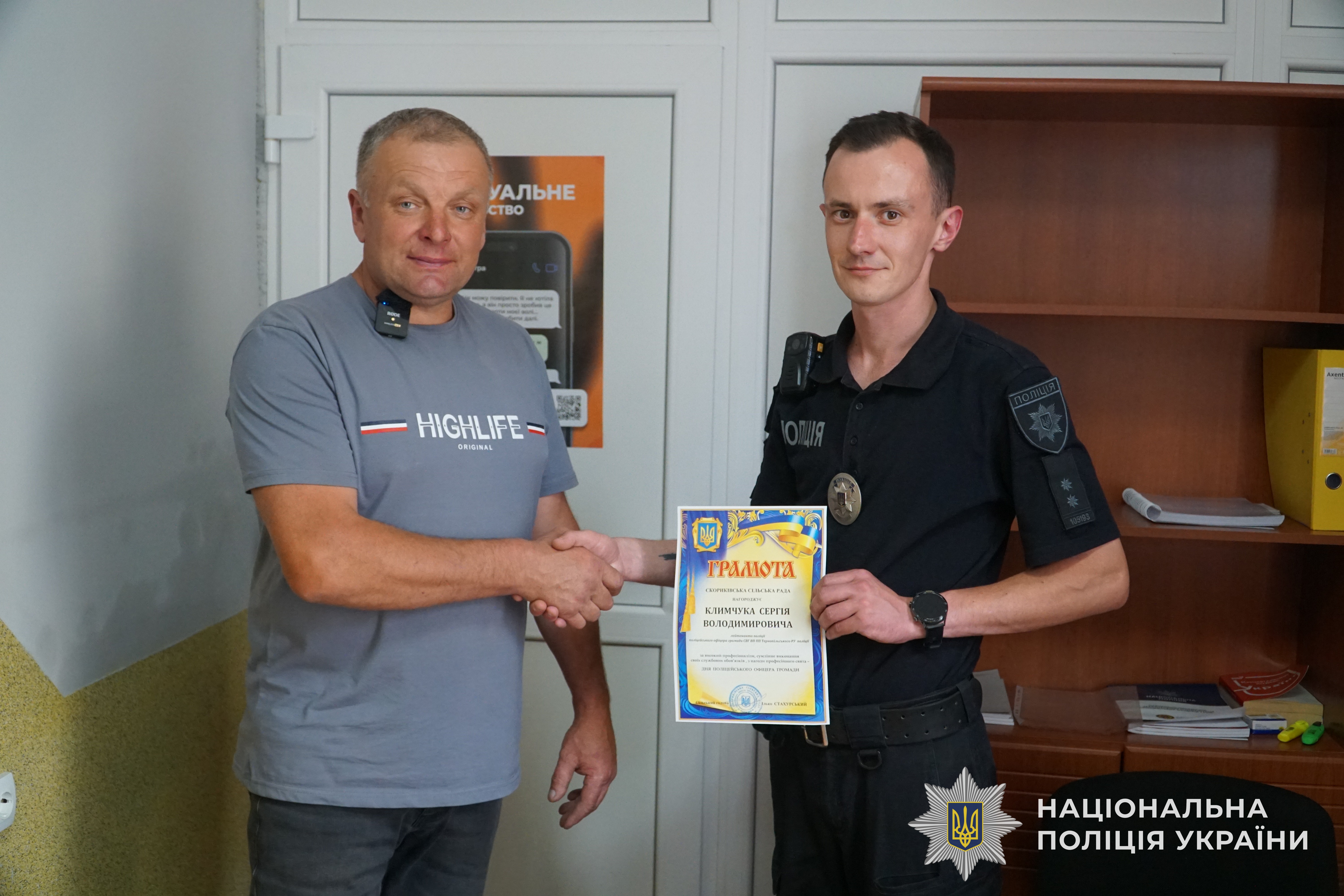 Подякували поліцейському офіцеру Сергію Климчуку за сумлінне виконання службових обов’язків й керівники громади.