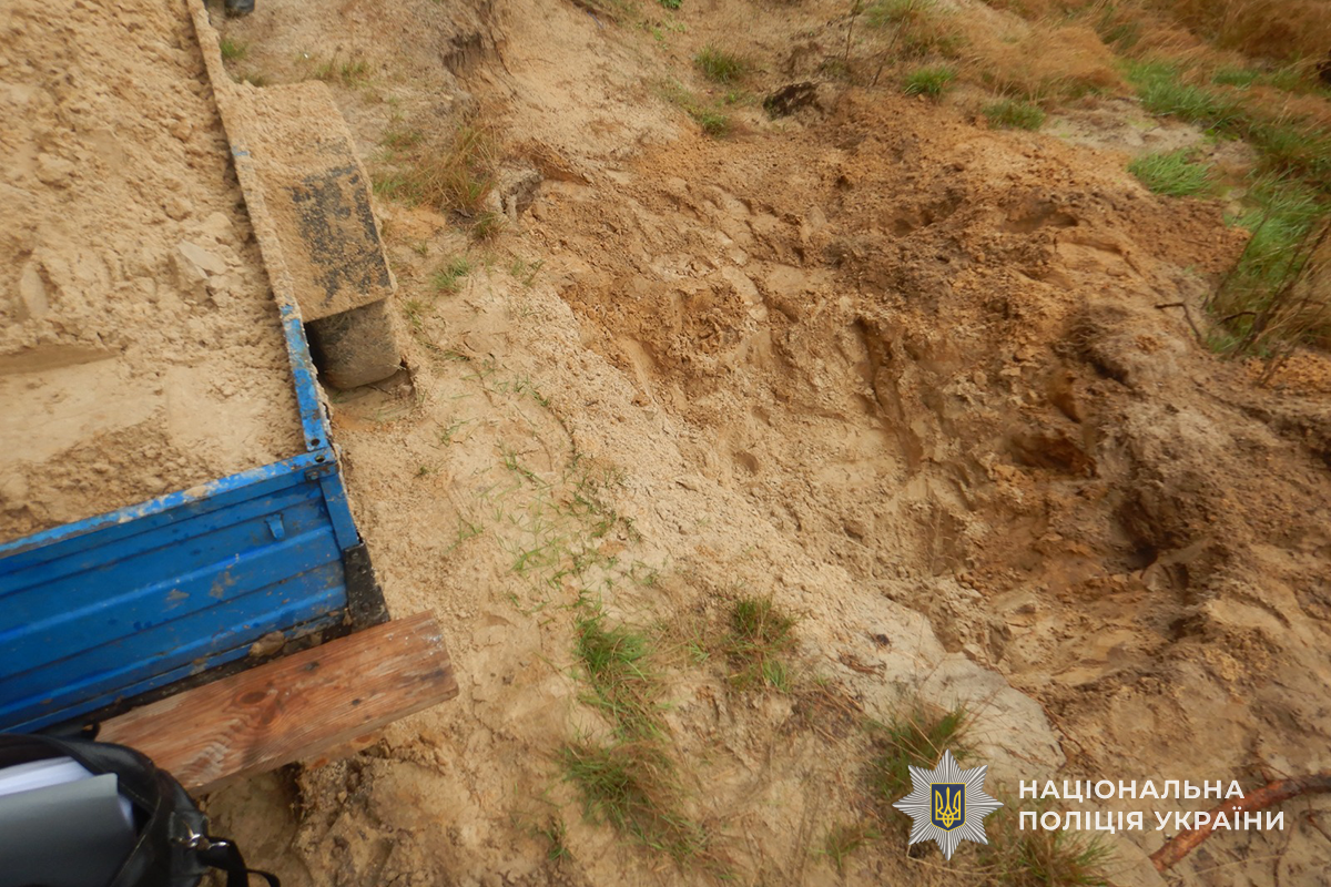 У ході перевірки стало відомо, що чоловік викопував пісок у забороненому місці та без жодних дозвільних документів. Пісок поліцейські вилучили. За даним фактом триває розслідування відповідно до частини 3 статті 240 (незаконне видобування корисних копалин) Кримінального кодексу України.