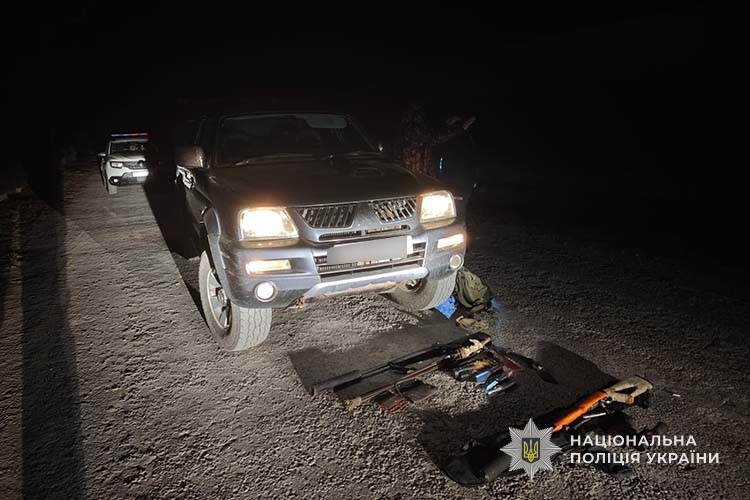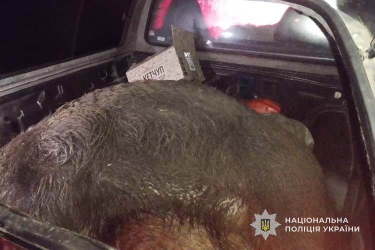 Автомобіль марки Mitsubishi L200 зупинив 10 листопада близько опівночі наряд групи реагування патрульної поліції в одному із сіл Саранчуківської територіальної громади. Оглядаючи авто, правоохоронці побачили зброю, а в багажнику дві туші кабанів. На місце злочину виїжджала слідчо-оперативна група.