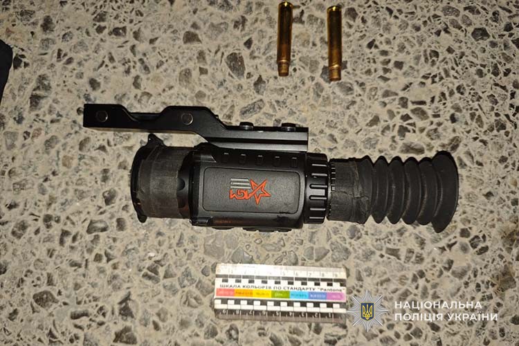 Дві туші кабана, дві рушниці з набоями та три мисливських ножі, а також тепловізор та тепловізійний приціл виявили та вилучили працівники поліції у чоловіків.