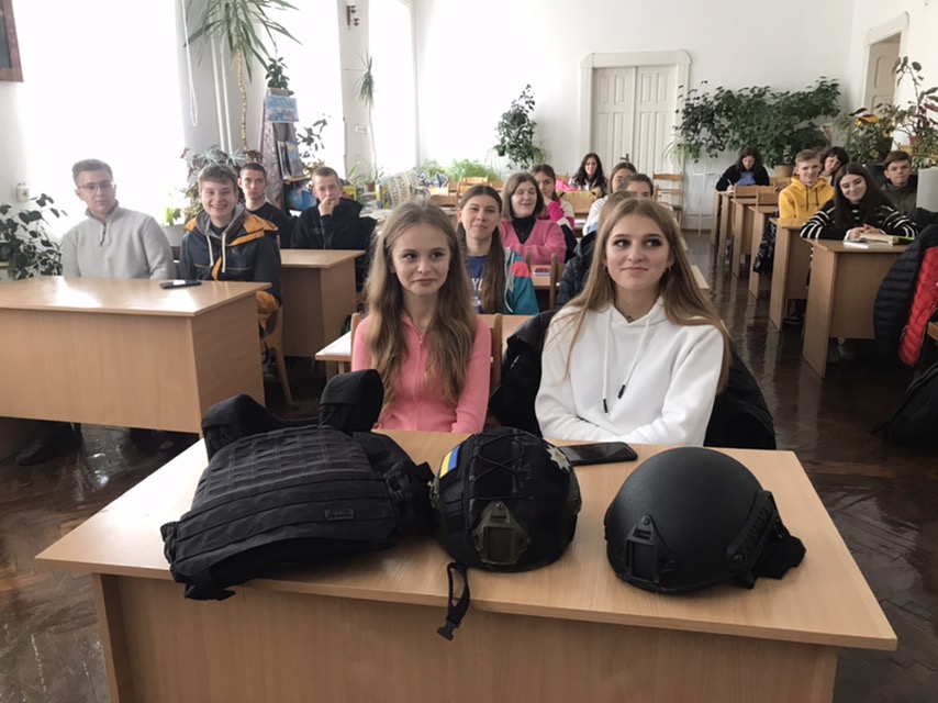 Учням розказали як поводитися в умовах воєнного стану, правила поведінки під час загрози ракетного обстрілу, як діяти у разі відсутності укриття поряд, яку домедичну допомогу можна надати у надзвичайних випадках.