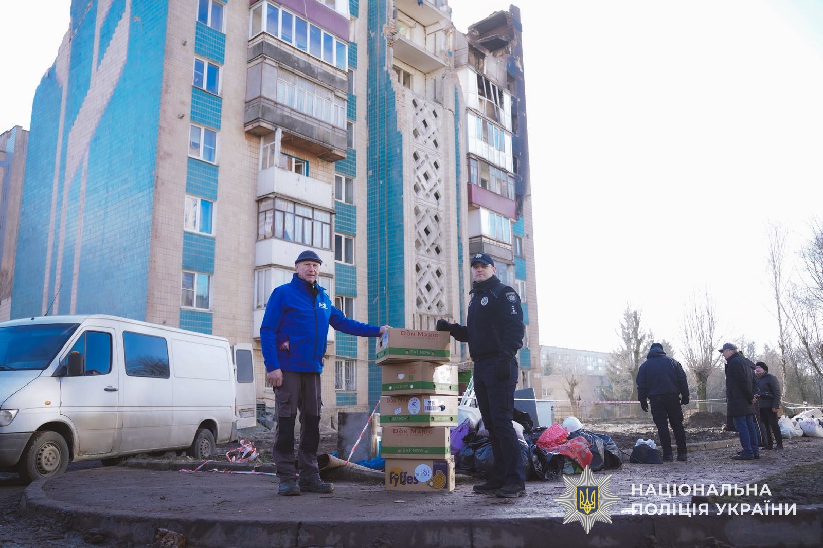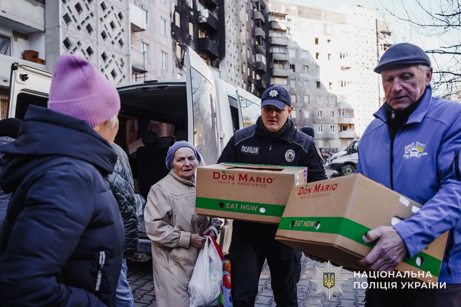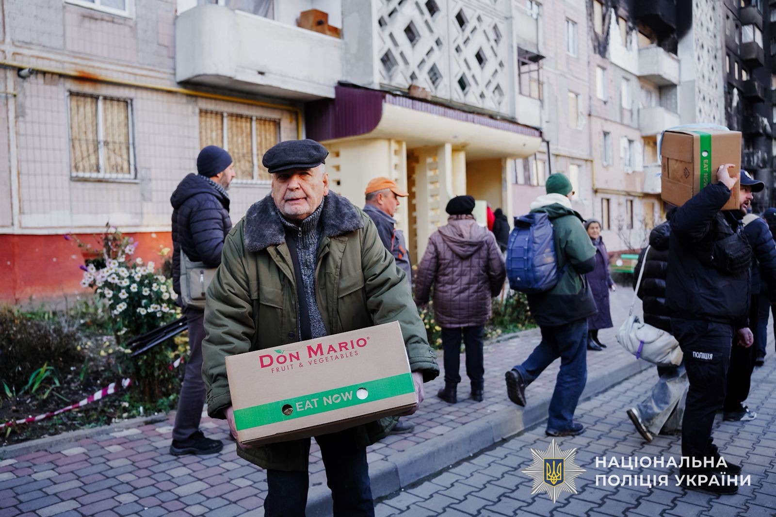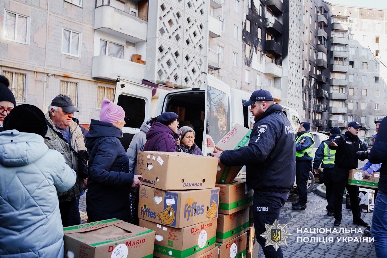 Волонтери та правоохоронці спільно організували роздачу гуманітарної допомоги для сімей, котрі залишилися без даху над головою або зазнали значних матеріальних втрат.