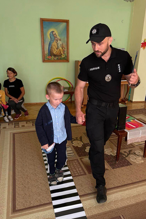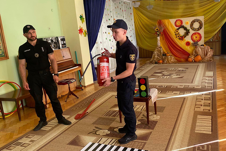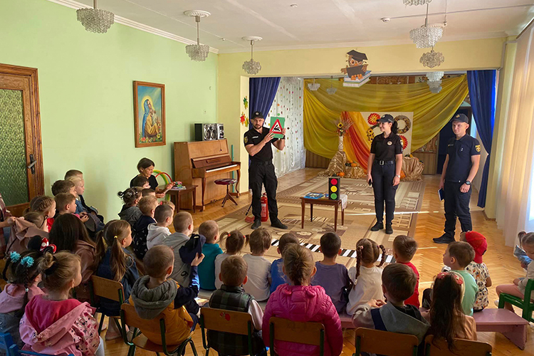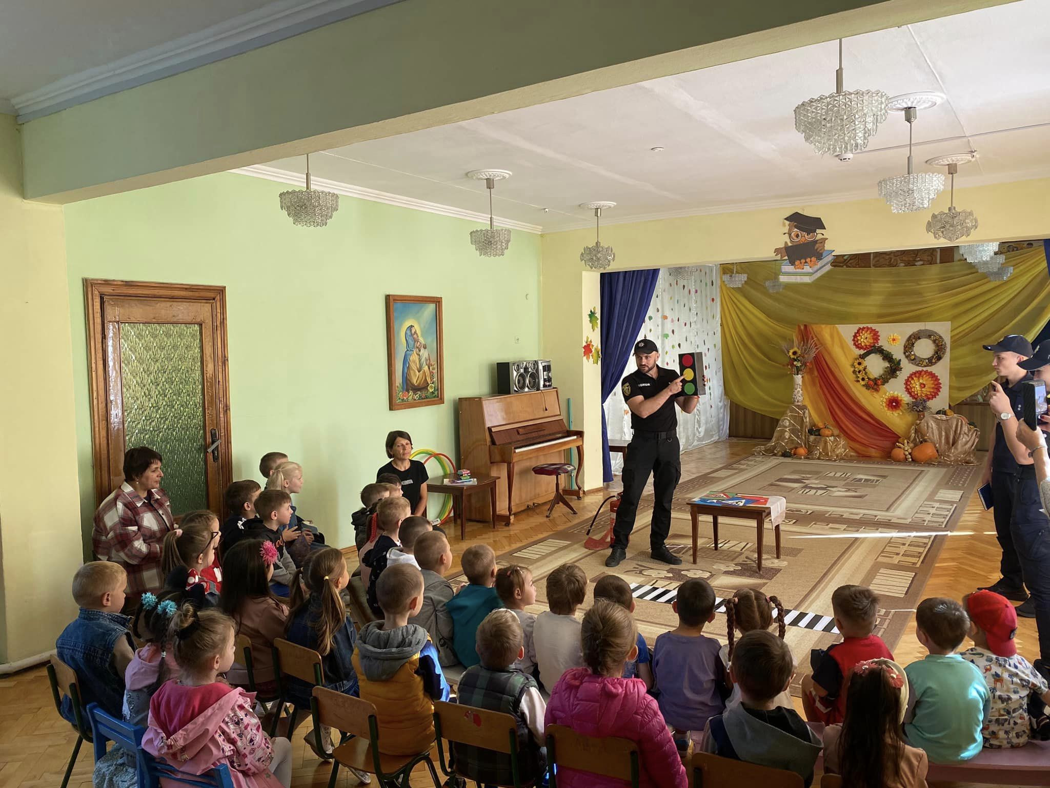 Правоохоронці розповіли та на прикладах продемонстрували дітям правила дорожнього руху та значення дорожніх знаків.. Разом з поліцейськими малюки вивчали безпечний шлях від дому до дитячого садочка, із задоволенням показували свої знання та вміння. Працівник служби надзвичайних ситуацій наголосив, чому не можна гратися з вогнем. Рятувальник пояснив, як треба поводитися вдома та в садочку, аби не призвести до виникнення пожежі та як працює вогнегасник.