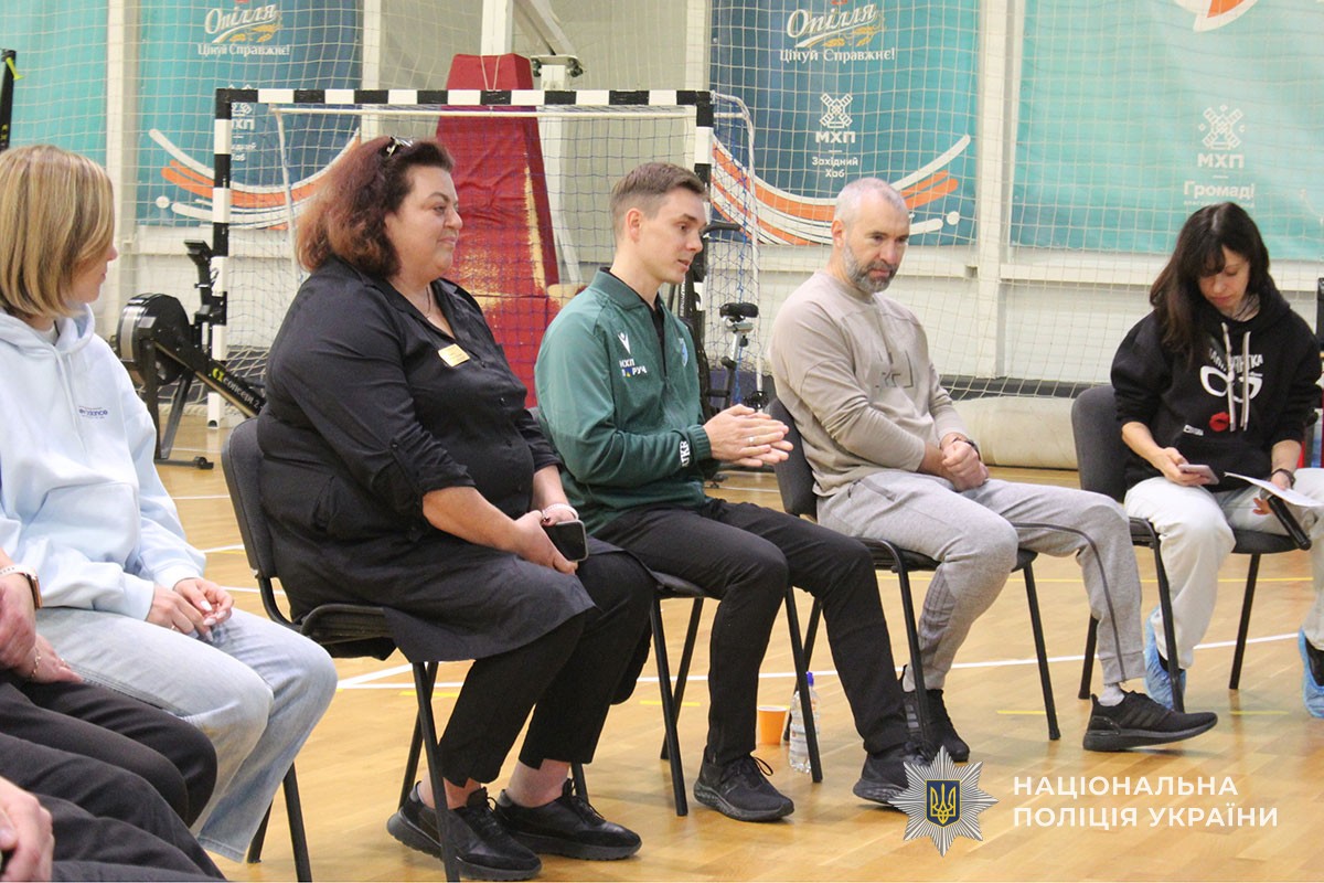 Представник ветеранського простору «Незламні духом» Олексій Горб розповів про свій досвід участі в міжнародних змаганнях «Ігри нескорених». Також ознайомив учасників заходу з можливістю займатись різними видами адаптивного спорту у місті Тернополі, а також поділився інформацією про створення та розвиток команди з волейболу сидячи «Яструби-МХП».