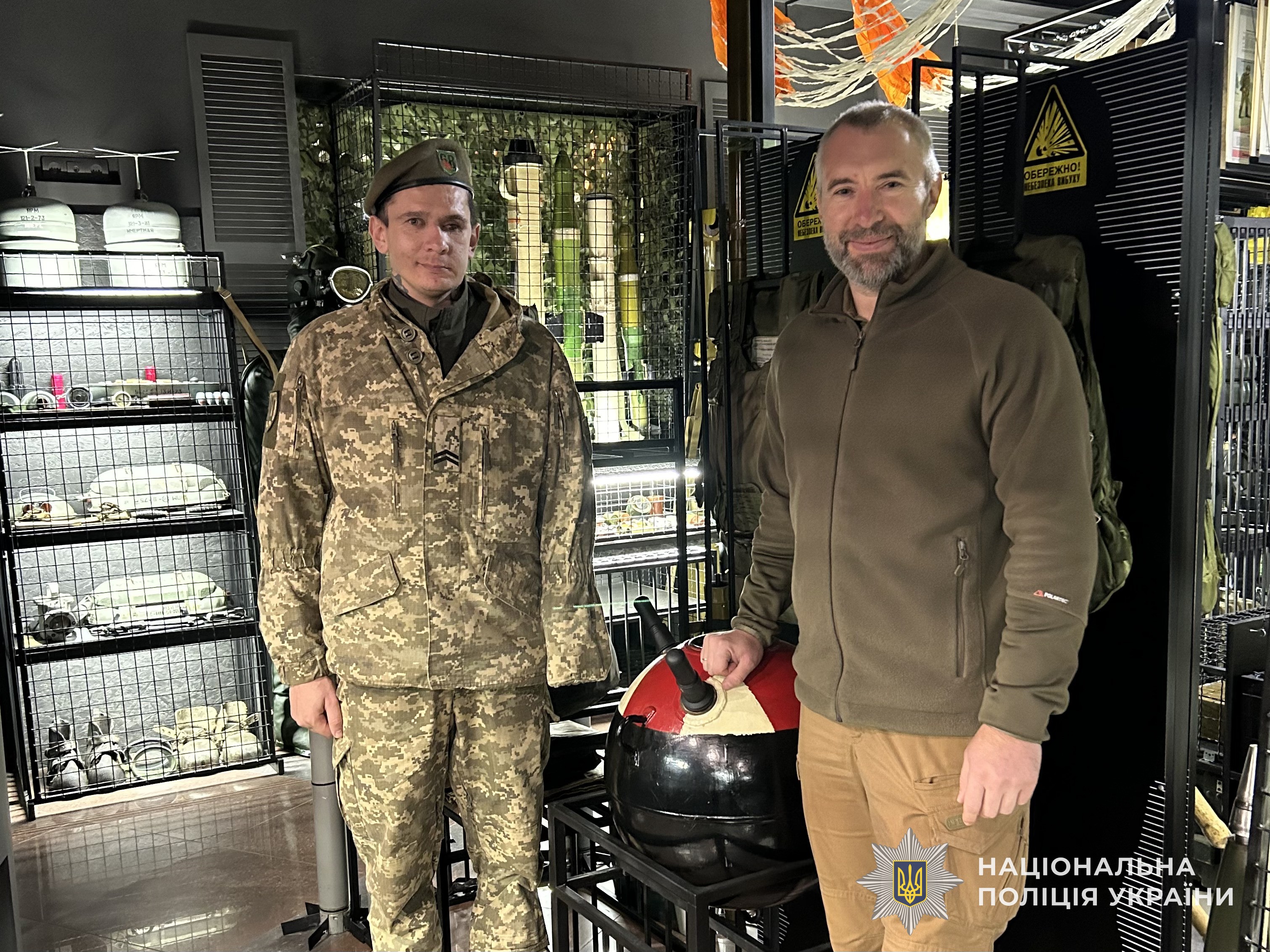 Поліцейські Тернопільщини та представники ветеранського простору «Незламні духом» висловлюють щиру вдячність Євгену Гуку за пізнавальну екскурсію та вагомий внесок у збереження історії саперної справи, а також Володимиру Соколу — за ініціативу, спрямовану на об’єднання ветеранів і представників правоохоронних органів та поширення знань у сфері безпеки й протидії вибухонебезпечним загрозам.