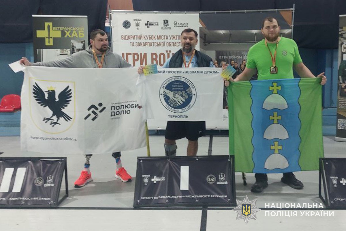 Серед учасників були ветерани з Тернопільщини - представники ветеранського простору «Незламні духом», серед яких діючі працівники поліції області. За результатами змагань наші ветерани вибороли призові місця у різних категоріях з урахуванням травм, отриманих під час бойових дій.